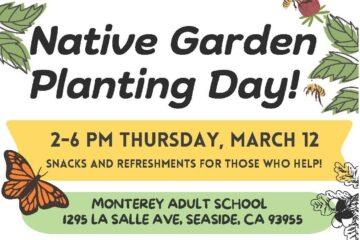 Native Garden Planting Day!Thursday, March 12, 2026, 2 – 6 PM Snacks and refreshments for those who help! Monterey Adult School1295 LaSalle AvenueSeaside, CA 93955 Volunteer with the Monterey Adult School, the Monterey County Resource Read more