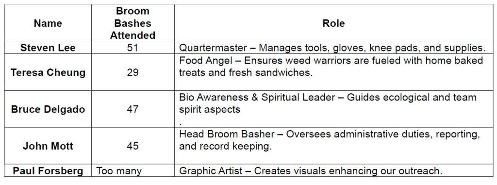 The continued success of the Broom Bash program is made possible by a dedicated team: