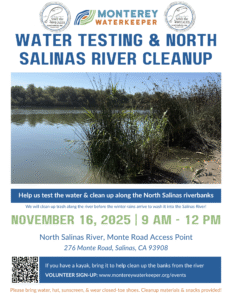 Join Monterey WaterKeeper and Save the Whales!. Help test the Salinas River water & pick up trash along the river bed before the rains arrive and wash it into our river! BRING A KAYAK!