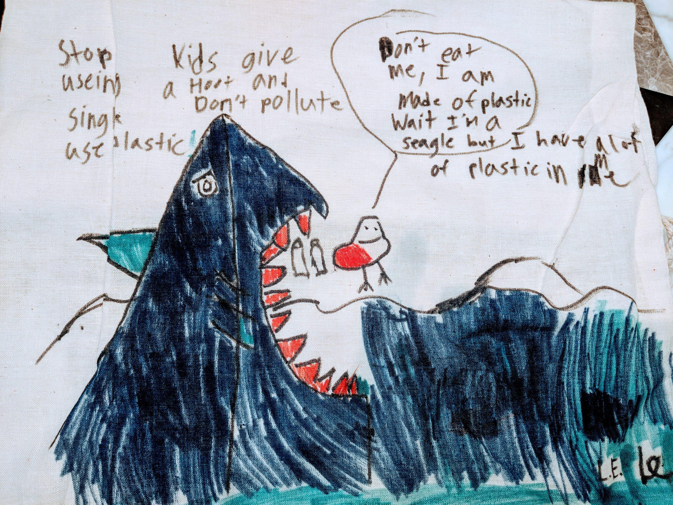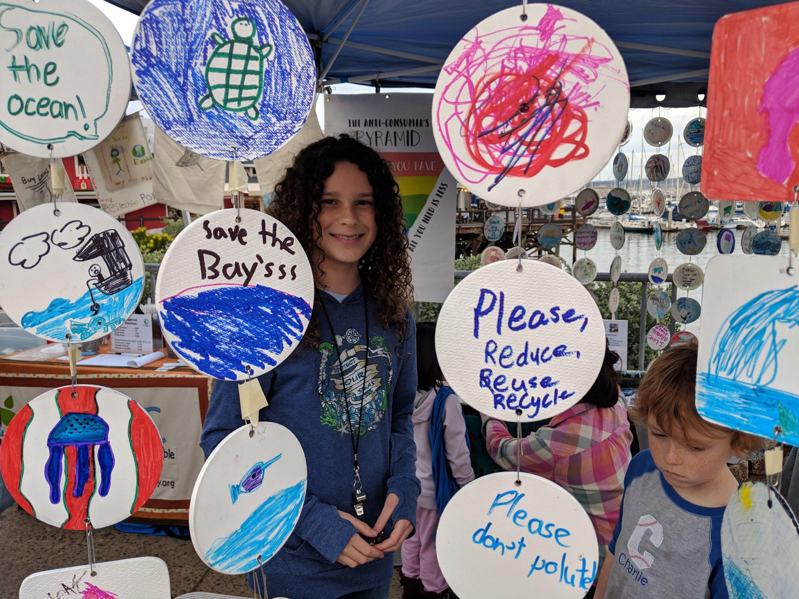 Students taught visitors about plastic alternatives and offering plastic-free living, the most common was to plan ahead and carry reusables. For pledges to adopt life-saving practices, visitors received a hand stamp and colored a disc to add to the ‘Curtain of Hope’ with one disc side of their favorite marine animal and on the other, the pledged action to save it.