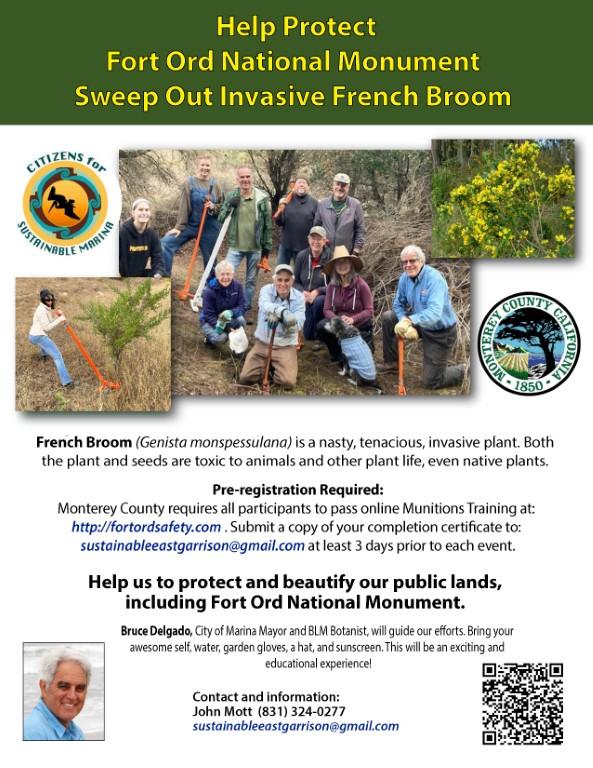 * Most of the Broom Bash volunteer events are at East Garrison, adjacent areas, and the Fort Ord National Monument.