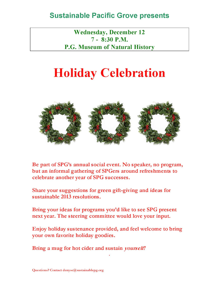 Sustainable Pacific Grove will hold our usual December party.